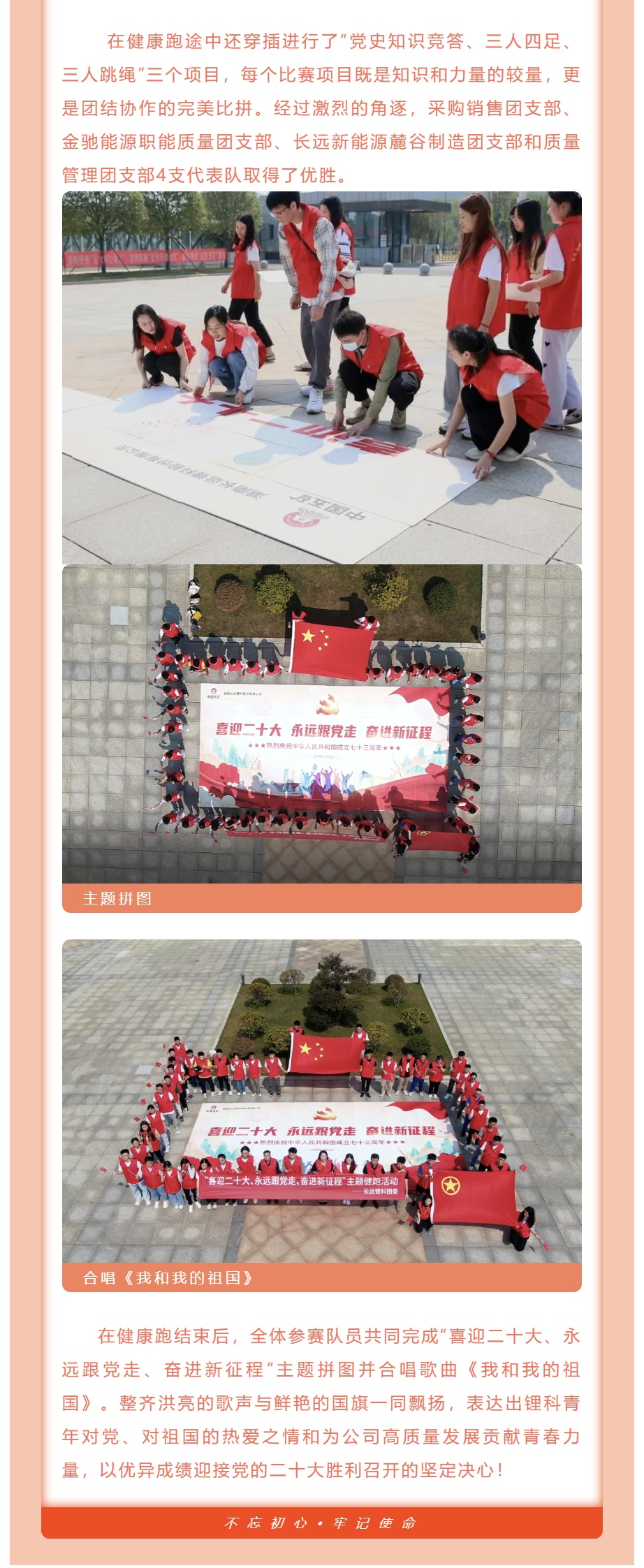 長遠鋰科團委開展“喜迎二十大、永遠跟黨走、奮進新征程”迎國慶健康跑活動